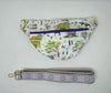 hardware: strap, zipper closure and back pocket for cell phone.
