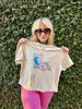 Our Spring Louisiana print is the perfect T-shirt for your spring days. This is an ivory short cut T-shirt.