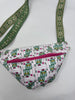 The perfect crossbody on the go! Fanny pack style but made to wear crossbody. measures 14” at the longest part and 8” tall in the middle.